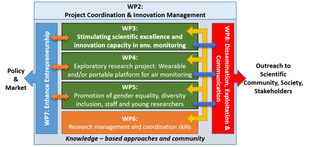 WP5 will be specifically dedicated to gender equality, diversity inclusion, and enhancement of staff and young researchers involvement in R&D activities related to the air monitoring sensors and platforms fabrication.